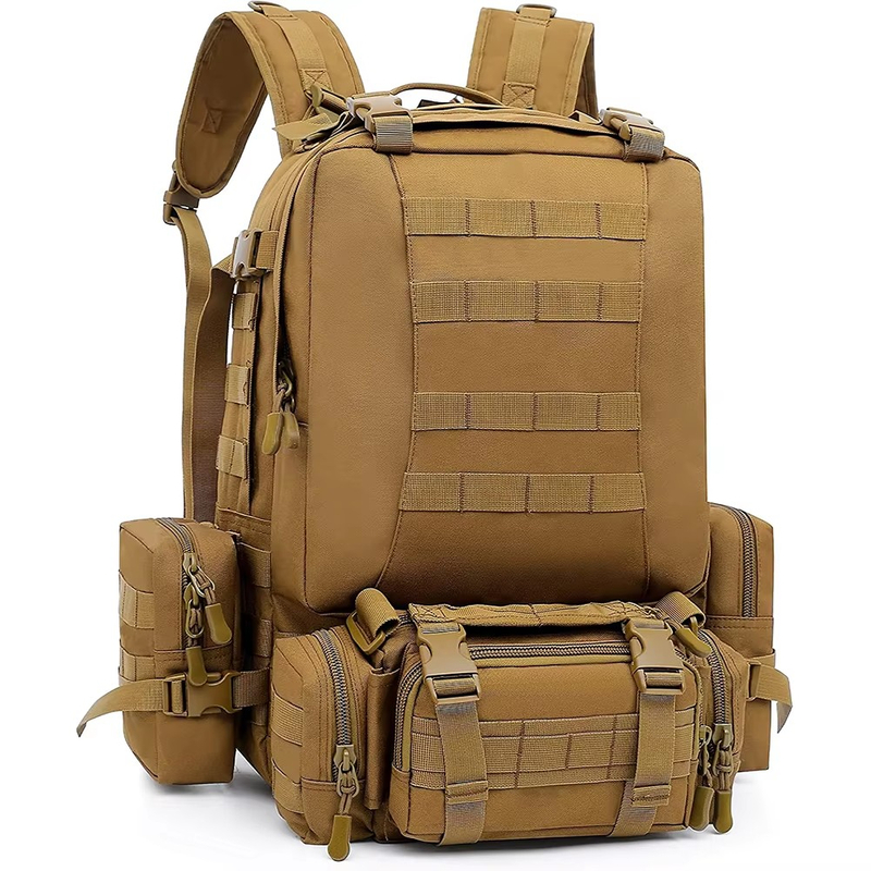 Modular Molle System & Detachable Pouches - Features full Molle webbing on the main bag and 4 detachable tactical pouches (waist bag, side pouches), allowing free combination of storage space for hunting gear and outdoor essentials.